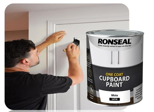- Ronseal One Coat Cupboard Paint White Sat 750Ml